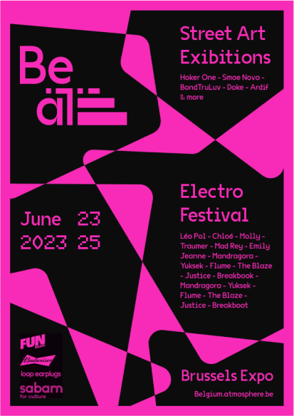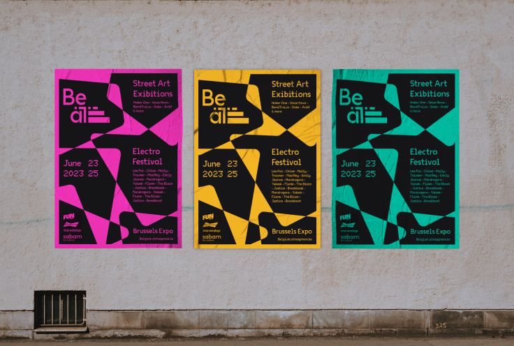 Nous avons réalisé ce projet en groupes de 4 étudiants, à la fin de la première année à Gobelins Paris. Nous devions inventer la communication d'un festival fictif. Nous avons choisi un festival autour de l'électro et du street art au Brussels Expo du Heysel. Je me suis chargé de la charte graphique, de l'affiche et du prototype du site web.