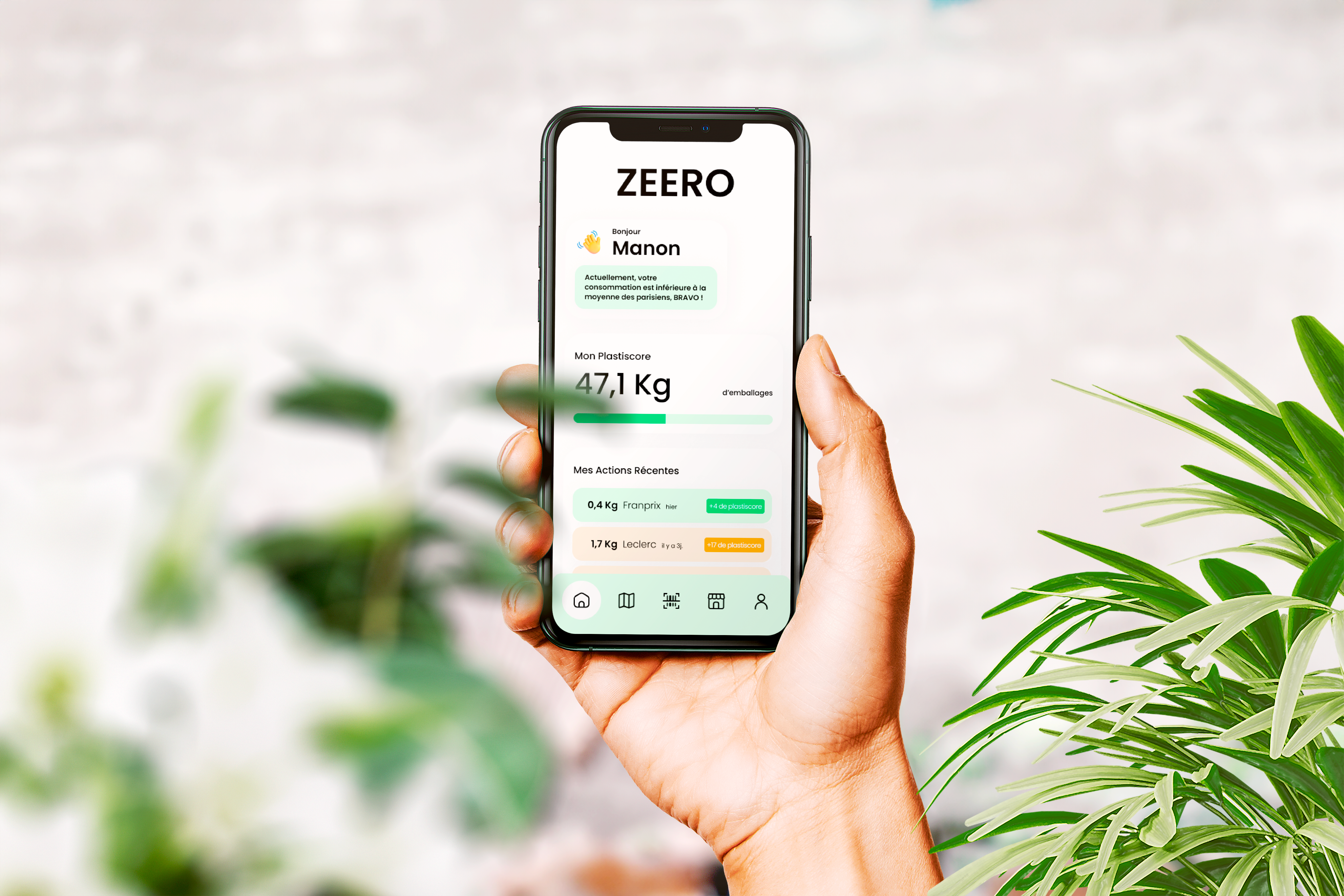 - La mesure de la consommation de plastique avec le plastiscore, qui évolue au scan de nos listes de courses.